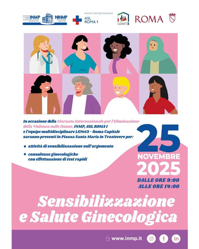 In occasione della Giornata internazionale per l’eliminazione della violenza contro le donne, domani 25 novembre, LGNET3 partecipa all’open day promosso dall’INMP e dalla ASL Roma 1 con un intervento dedicato alla sensibilizzazione e al supporto sanitario rivolto a tutte le donne. L’iniziativa rappresenta un momento di incontro e informazione aperto alla cittadinanza, con l’obiettivo di favorire la consapevolezza sul tema della violenza di genere e promuovere l’accesso ai servizi socio-sanitari.