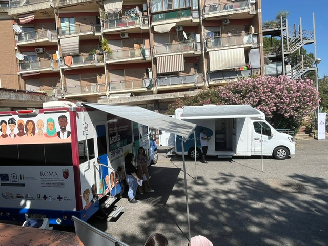 Le Unità Mobili Sociosanitarie (UMS) sono presìdi di prossimità che portano sul territorio orientamento sociale, supporto legale e primo accesso alla salute per i Cittadini di Paesi Terzi più difficili da raggiungere. Ogni UMS opera con un’équipe multidisciplinare (assistente sociale, operatore sociale, mediatori, psicologi, medici, assistenti sanitari, infermieri e operatori legali) in stretto raccordo con ASL Roma 1, ASL Roma 2, ASL Roma 3, Sala Operativa Sociale e SUAM per attivare prese in carico e percorsi personalizzati socio-sanitari integrati. Tre UMS presidiano aree definite, mentre una Unità Mobile Medica interviene in modo trasversale; il coordinamento è assicurato da un HUB presso il Polo Sociale della Stazione Termini e da un HUB aziendale.